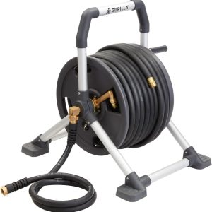• Sale! Gorilla 150’ Aluminum Zero-Rust Upright Hose Reel