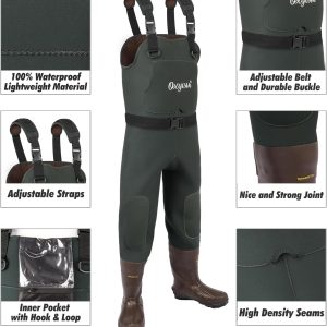 • OXYVAN Duck Hunting Waders with 200G Rubber Boots Insulated,Neoprene Fishing Chest Waders for Men & Women